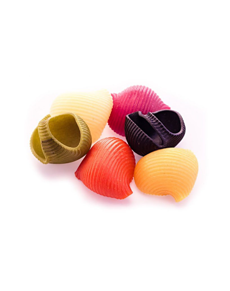 INGREDIENTI semola di GRANO DURO, barbabietola, spinaci, curcuma, aroma naturale di paprika, carota nera.
